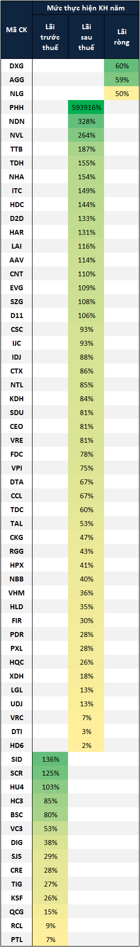 Mức thực hiện kế hoạch 2025 của một số doanh nghiệp BĐS