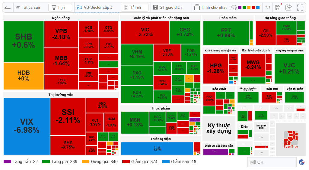 Cổ phiếu nhà Vingroup tiếp tục đóng vai trò là lực cản của thị trường. Trong đó, VIC đóng cửa giảm 3,7%, VHM giảm 3% và VRE giảm 2,3%, tổng cộng bộ 3 này đã lấy hơn 10 điểm của chỉ số chung.