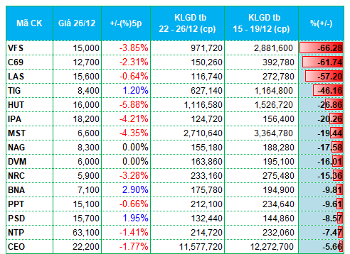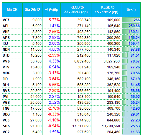 Top 20 mã có thanh khoản tăng/giảm cao nhất sàn HNX