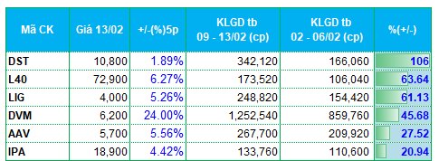 * Danh sách các mã tăng, giảm thanh khoản nhiều nhất xét đến khối lượng giao dịch bình quân trên 100,000 đơn vị/phiên.