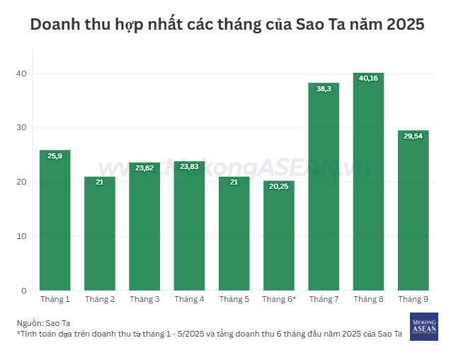 Doanh thu hợp nhất trong tháng của doanh nghiệp ghi nhận giảm 2% so với cùng kỳ năm trước, còn 29,54 triệu USD. Kết quả này diễn ra sau khi Sao Ta có mức doanh thu cao nhất kể từ đầu năm trong tháng 8/2025 với 40,16 triệu USD (tương ứng tăng 32% so với cùng kỳ).