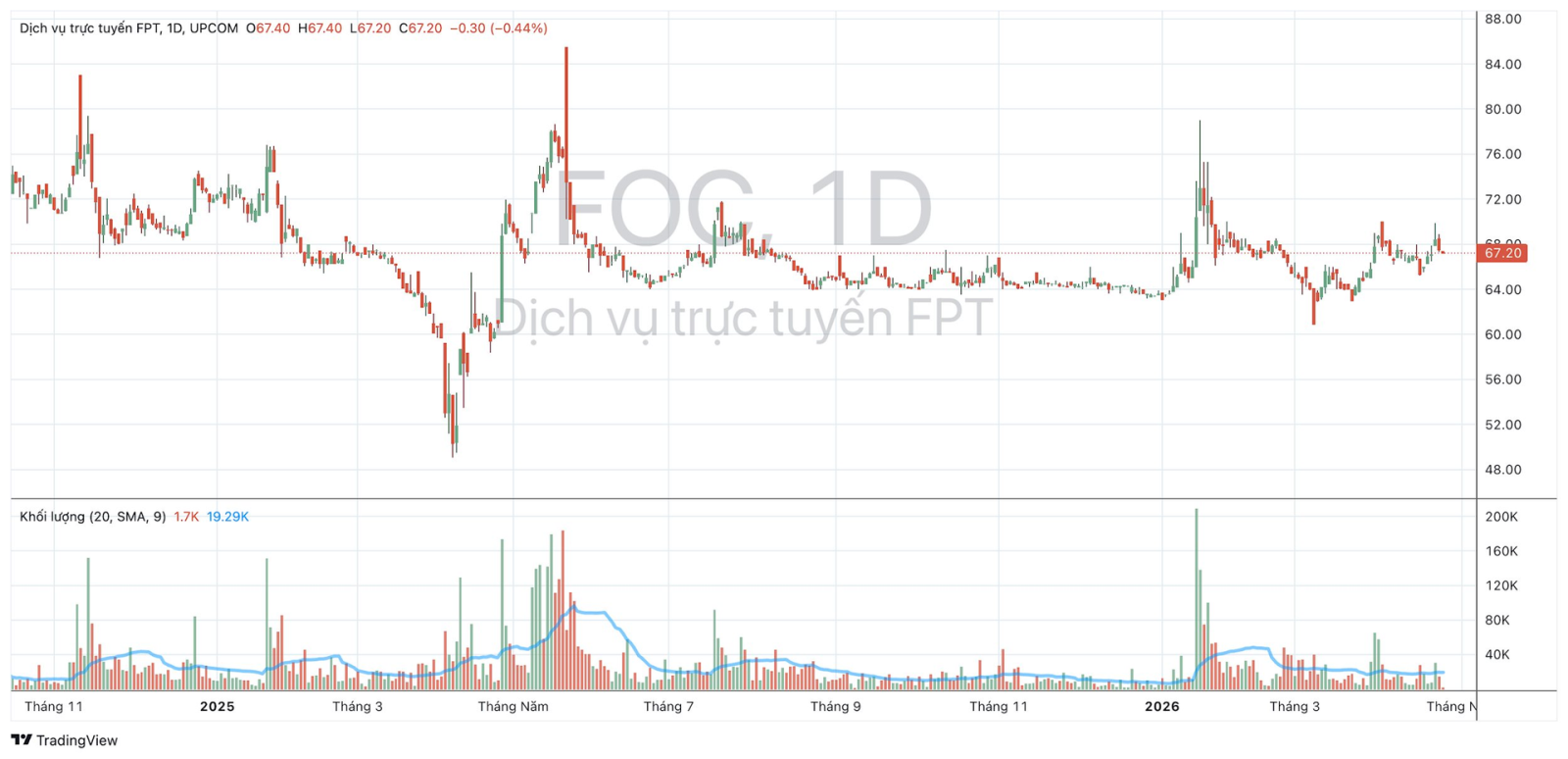 Trên thị trường, cổ phiếu FOC hiện đang giao dịch quanh mốc 67.200 đồng/cp, tương ứng tăng khoảng 6% so với vùng giá hồi đầu năm.