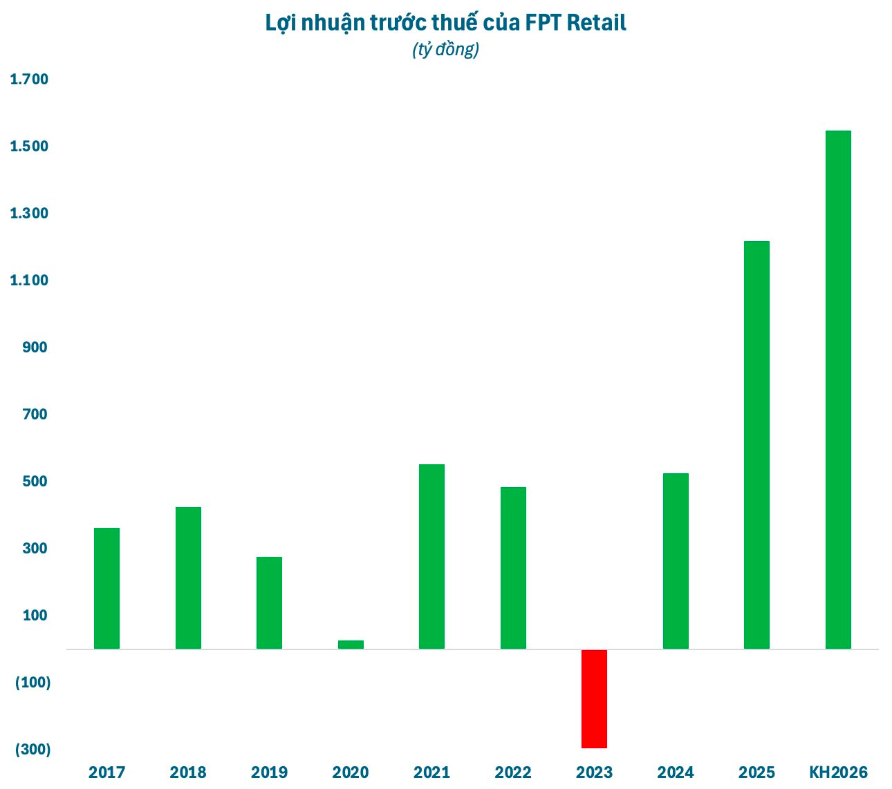 Năm 2025 trước đó, FPT Retail ghi nhận doanh thu đạt 51.083 tỷ đồng, tăng 27% so với cùng kỳ, hoàn thành 106% kế hoạch năm. Lợi nhuận trước thuế đạt 1.219 tỷ đồng, tăng 131% so với năm 2024, hoàn thành 135% kế hoạch đề ra. Kết quả này phản ánh nỗ lực cải thiện hiệu quả vận hành, kiểm soát chi phí và nâng cao chất lượng dịch vụ ở một số mảng kinh doanh của công ty.