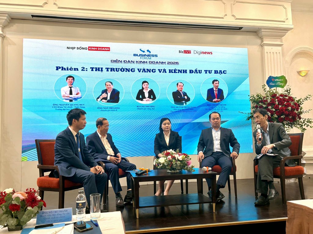 Tại Diễn đàn Kinh doanh 2026 “Không gian tăng trưởng mới: Cơ hội và chiến lược” do trang Nhịp sống Kinh doanh (BizLIVE) tổ chức ngày 22/10 tại Hà Nội, ông Huỳnh Minh Tuấn, Nhà sáng lập Công ty Cổ phần tư vấn đầu tư và quản lý tài sản FIDT kiêm Phó Chủ tịch Công ty Cổ phần Chứng khoán APG cho biết, với vị thế là “kênh trú ẩn” trong bối cảnh kinh tế vĩ mô nhiều biến động, giá vàng, bạc thời gian qua đã tăng mạnh. Trong 10 tháng qua, giá vàng đã tăng 56% nhờ ba động lực chính: Cục Dự trữ Liên bang Mỹ (Fed) hạ lãi suất chậm hơn kỳ vọng làm tăng sức hấp dẫn của vàng; lo ngại khủng hoảng kinh tế toàn cầu từ các chính sách thuế quan khiến vàng trở thành “kênh trú ẩn” an toàn; nhu cầu mua vào mạnh mẽ từ các ngân hàng trung ương. “Với bối cảnh nhiều bất ổn, vàng được dự báo sẽ tiếp tục là một tâm điểm trong thời gian tới”, ông Tuấn nhận định.