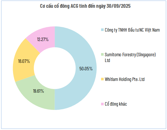 Tính đến ngày 30/09/2025, Công ty TNHH Đầu tư NC Việt Nam là cổ đông lớn nhất với hơn 50% vốn, dự kiến nhận khoảng 98 tỷ đồng cổ tức. Hai cổ đông lớn khác là Sumitomo Forestry và Whitlam Holding lần lượt nắm gần 20% và hơn 18% vốn, tương ứng nhận hơn 38 tỷ đồng và 35 tỷ đồng cổ tức.