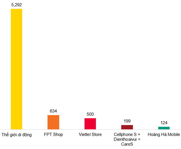 Số lượng cửa hàng của các công ty bán lẻ công nghệ