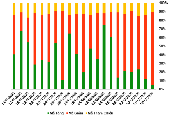 Trong phiên giao dịch ngày 12/12, thị trường chứng khoán Việt Nam chứng kiến cú điều chỉnh mạnh khi VN-Index mất hơn 52 điểm, lùi về 1.646,9 điểm. Áp lực bán lan rộng trên diện rộng với số mã giảm gấp gần bốn lần số mã tăng, trong khi khối ngoại tiếp tục bán ròng mạnh. Tuy nhiên, ngay trong bối cảnh tiêu cực đó, sàn HoSE vẫn ghi nhận hai cổ phiếu đi ngược xu hướng chung khi đồng loạt lập đỉnh lịch sử, thu hút sự chú ý của dòng tiền.