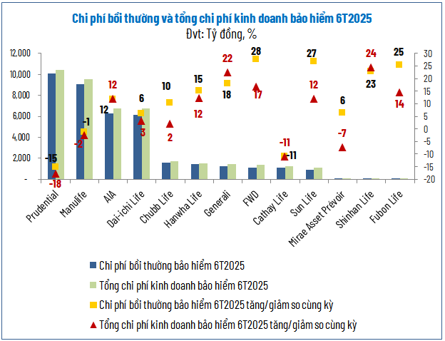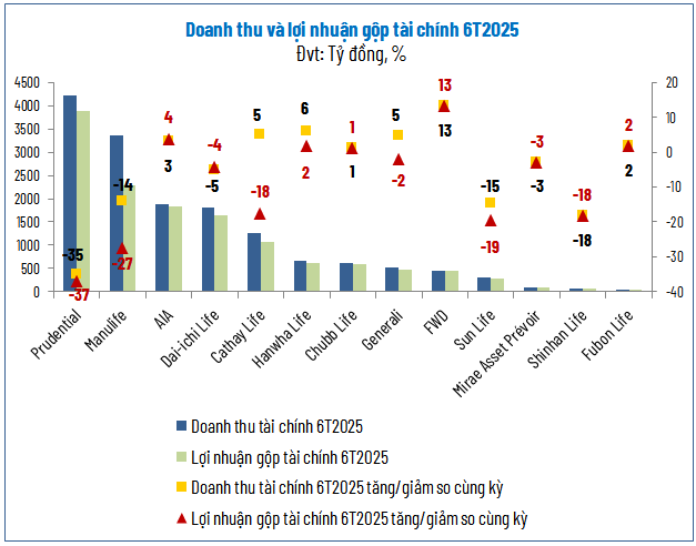Ngược lại, một số doanh nghiệp quy mô nhỏ như Shinhan Life và Funbon Life lại tăng trưởng tích cực, với doanh thu lần lượt 134 tỷ đồng và 53 tỷ đồng, tăng 25% và 3%. Dù vậy, diễn biến chỉ mang tính cục bộ, chưa đủ tạo ra chuyển biến lớn cho toàn thị trường.