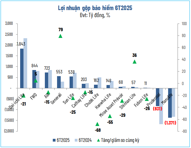 Trái lại, vẫn có những điểm sáng hiếm hoi. Generali lãi gộp từ hoạt động bảo hiểm tăng 79%, lên 553 tỷ đồng; FWD và Shinhan Life cũng có mức tăng nhẹ. Tuy nhiên, xét tổng thể, lợi nhuận mảng kinh doanh bảo hiểm của nhóm doanh nghiệp ngoại vẫn bị thu hẹp đáng kể so với giai đoạn trước.