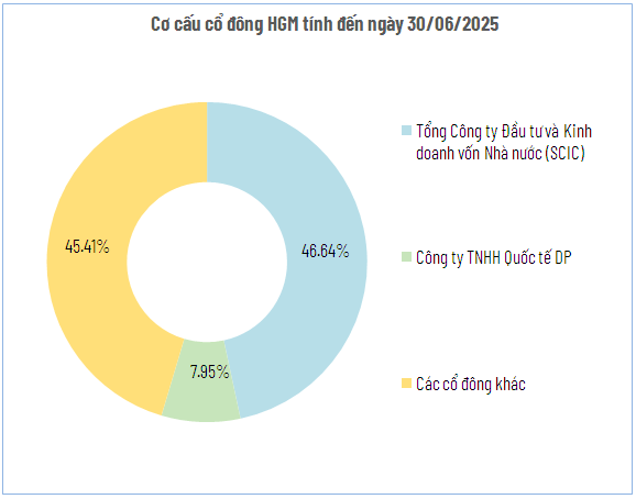 Hiện Tổng công ty Đầu tư và Kinh doanh vốn Nhà nước (SCIC) vẫn là cổ đông lớn nhất của HGM, nắm giữ 46.64% vốn và dự kiến nhận gần 50 tỷ đồng trong đợt chi trả này. Công ty TNHH Quốc tế DP với 7.95% cổ phần cũng sẽ nhận khoảng 8.5 tỷ đồng.