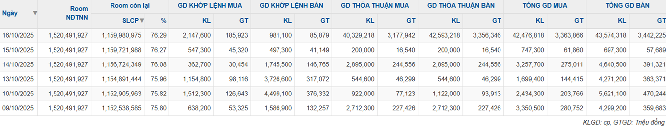 Phiên 16/10 cũng ghi nhận khối ngoại bán ra gần 43.46 triệu cp MSN và mua vào gần 42.5 triệu cp, nhiều khả năng đây chính là giao dịch giữa SK Invest và nhà đầu tư ngoại khác.