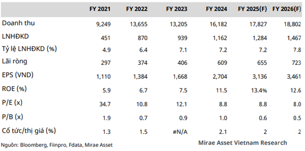 Năm 2025, MAS dự phóng doanh thu PAN đạt 17,827 tỷ đồng (tăng 10% so với năm trước), lãi ròng đạt 655 tỷ đồng (tăng 7.6%), biên lợi nhuận thu hẹp từ 20.9% năm 2024 xuống 20.3%, chủ yếu do chi phí đầu vào ở mức cao cùng với áp lực từ thuế đối ứng. Năm 2026, ước tính doanh thu đạt 18,802 tỷ đồng (tăng 5%), lãi ròng đạt 723 tỷ đồng (tăng 10%), biên lợi nhuận gộp cải thiện lên mức 20.6% nhờ kỳ vọng áp lực chi phí đầu vào giảm dần.