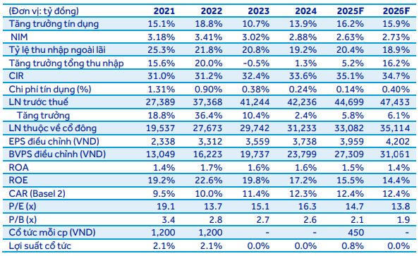 Dự phóng kết quả kinh doanh 2025-2026 của VCB