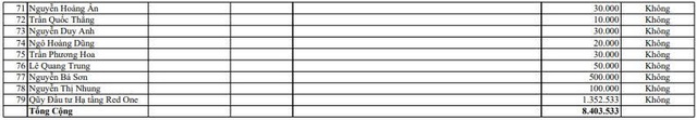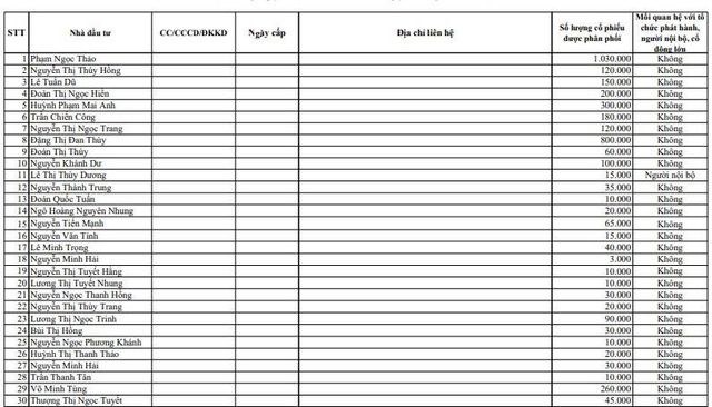 Theo danh sách kèm theo cho thấy, Quỹ Đầu tư Hạ tầng Red One dự kiến được phân phối nhiều nhất với hơn 1,35 triệu cổ phiếu, tiếp đến là nhà đầu tư cá nhân Phạm Ngọc Thảo dự kiến được phân phối 1,03 triệu cổ phiếu.