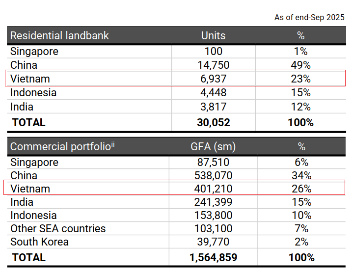 Xét về danh mục thương mại, với tổng diện tích sàn xây dựng (GFA) là 401,210m2, Việt Nam vẫn là thị trường lớn thứ hai của Keppel, chiếm 26% trong tổng diện tích sàn gần 1.6 triệu m2 của tập đoàn này.