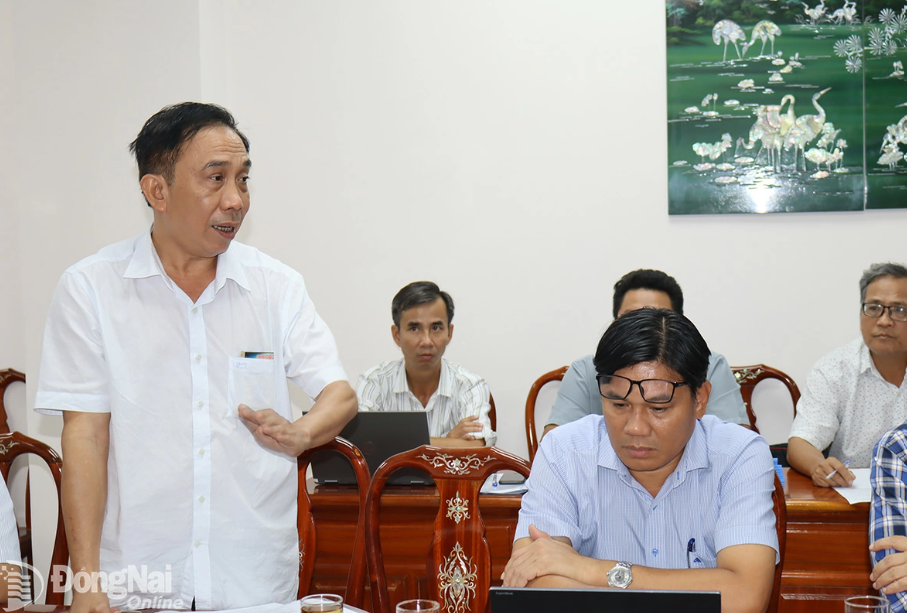 Đại diện xã Nhơn Trạch, tỉnh Đồng Nai báo cáo tiến độ giải phóng mặt bằng dự án điện trên địa bàn. Ảnh: Hoàng Lộc