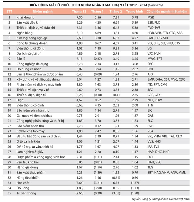 Diễn biến các nhóm ngành thời điểm Tết Nguyên đán