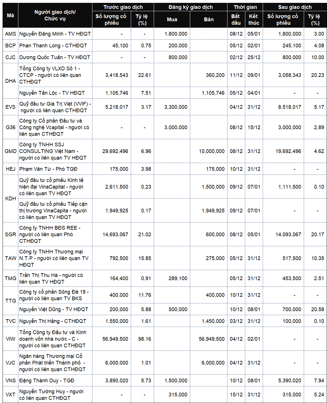 Danh sách lãnh đạo công ty và người thân giao dịch từ ngày 1-5/12/2025
