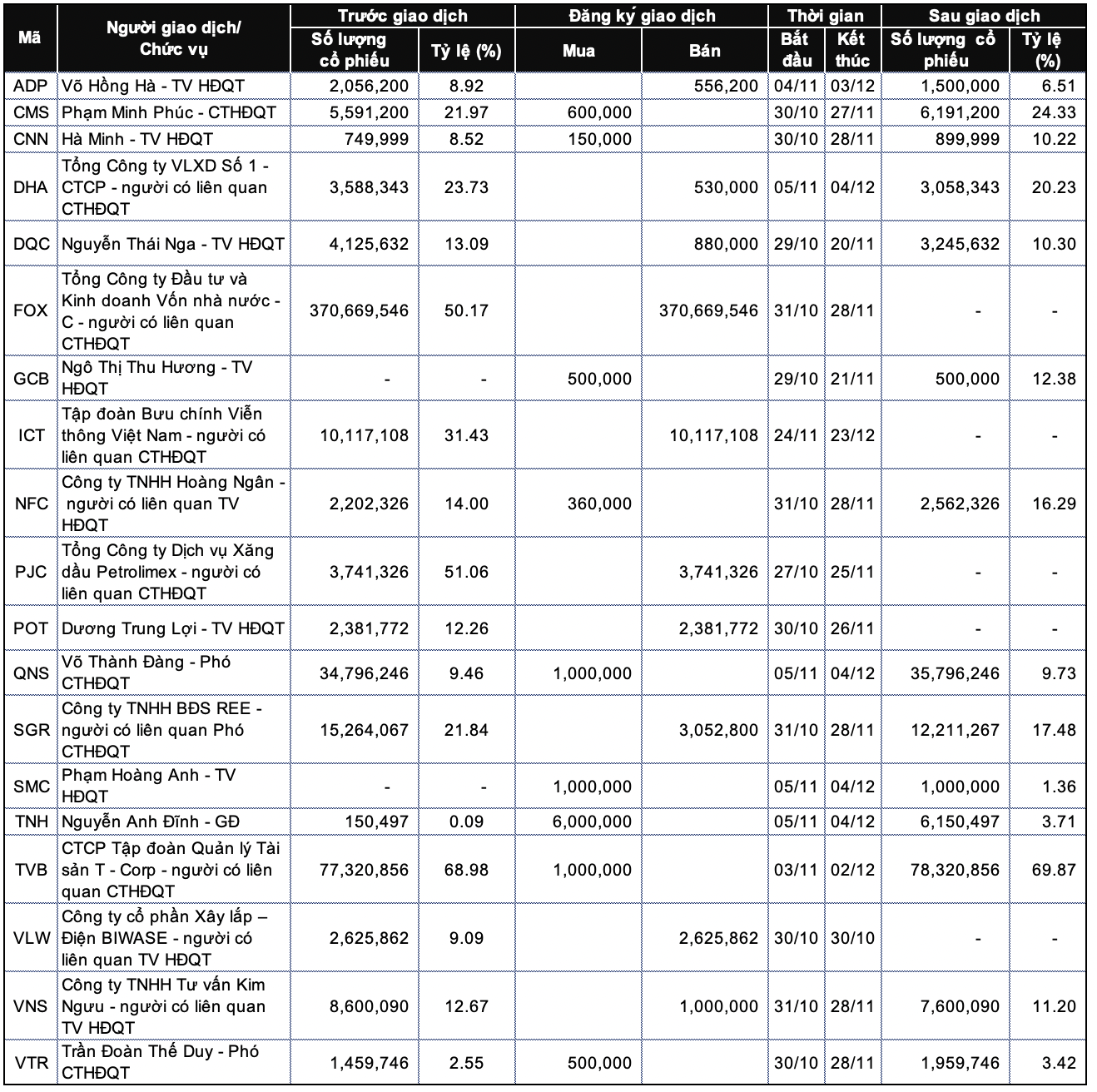 Danh sách lãnh đạo công ty và người thân giao dịch từ ngày 27-31/10/2025