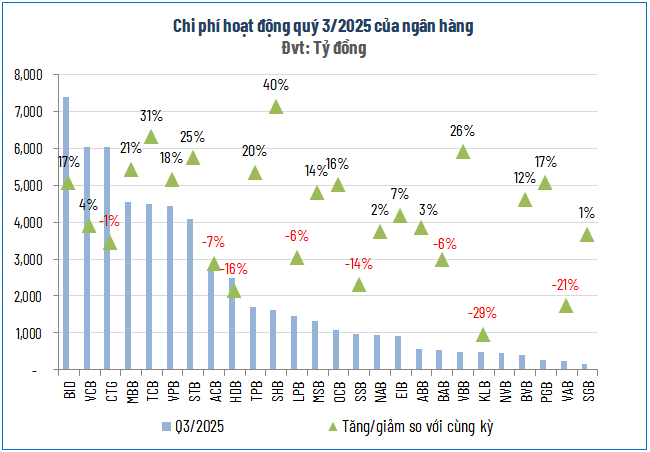 Thu nhập lãi thuần vẫn là trụ cột chính với hơn 411 ngàn tỷ đồng, tăng 9% so với cùng kỳ; cùng với thu nhập ngoài lãi tăng 26%, đóng góp hơn 117 ngàn tỷ đồng. Chi phí hoạt động và chi phí dự phòng rủi ro đều tăng ở mức hợp lý, lần lượt tăng 9% và 4%.