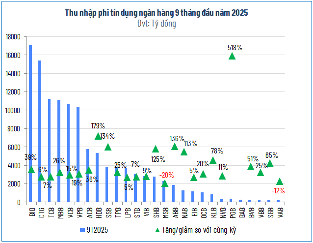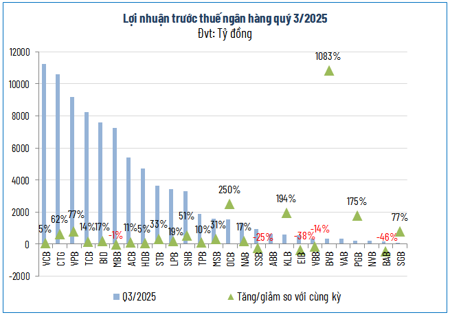 Đáng chú ý, Techcombank, nhờ mức tăng 14% trong quý 3, đã vượt MBB để vươn lên vị trí thứ 4 toàn ngành.