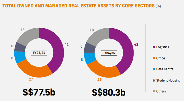 Logistics chiếm tỷ trọng lớn nhất trong tổng tài sản Mapletree đang quản lý. Nguồn: Báo cáo thường niên 2024/2025 của Mapletree