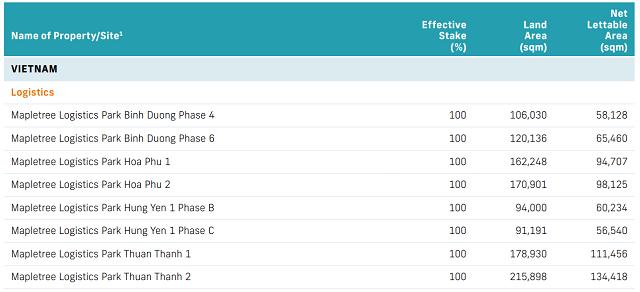 Hiện MLT sở hữu 12 kho xây sẵn tại Việt Nam với tổng diện tích gần 700,000m2 cho thuê. Song song, tập đoàn mẹ cũng đang triển khai thêm khoảng 700,000m2 khác. Danh mục logistics tại Việt Nam của Mapletree cũng đã đạt tỷ lệ lấp đầy gần tuyệt đối, 97.8%.