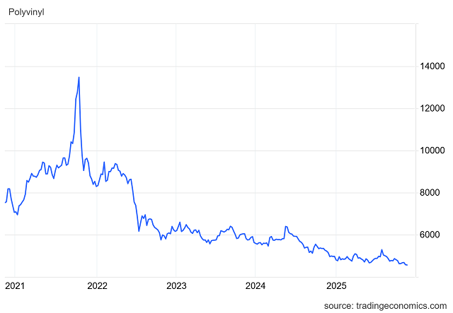 Giá hạt nhựa PVC thấp kéo dài. Nguồn: tradingeconomics.com