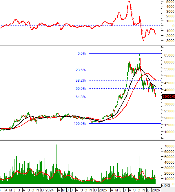 Giá đang test lại Fibonacci Retracement 61.8%. Nếu ngưỡng này trụ vững thì rủi ro ngắn hạn sẽ được hạn chế.