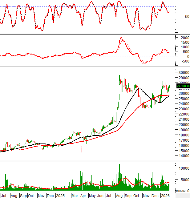 Khối lượng giao dịch cần vượt mức trung bình 20 ngày trong các phiên tới để xác nhận đà tăng.