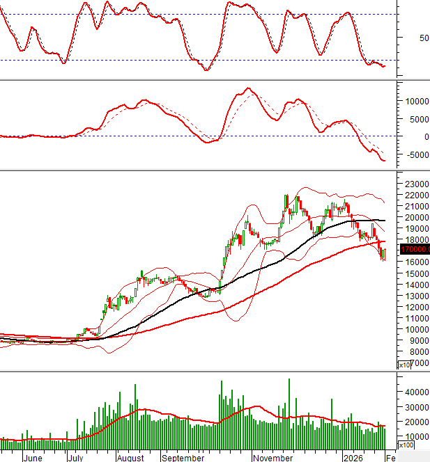 Giá cũng rơi xuống dưới đường SMA 100 ngày nên xu hướng tăng trưởng có nguy cơ bị đảo ngược.