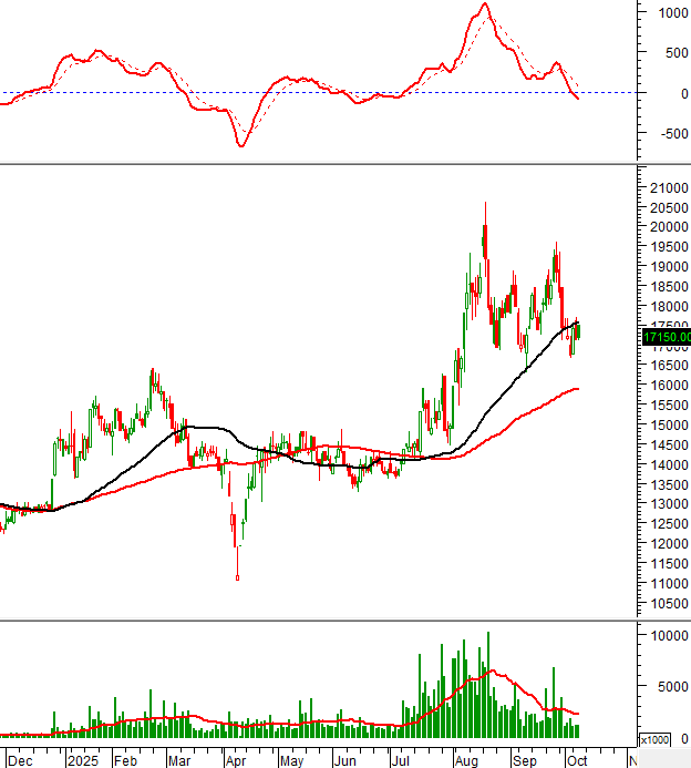 Chỉ báo MACD tiếp tục duy trì tín hiệu mua xuất hiện từ đầu tháng 10/2025.