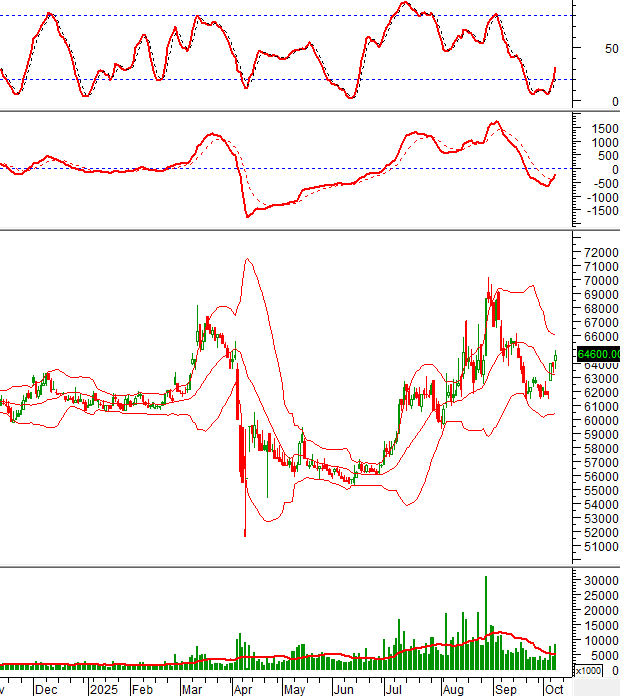 Giá đã vượt qua đường Middle của Bollinger Bands nên rủi ro ngắn hạn giảm bớt.