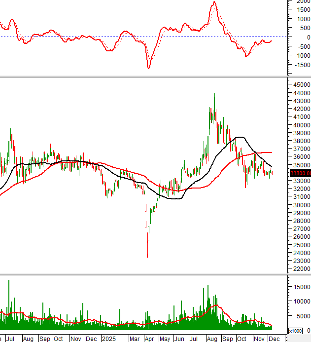Đáy cũ tháng 10/2025 (tương đương vùng 34,000-36,000) đang đóng vai trò hỗ trợ mạnh.
