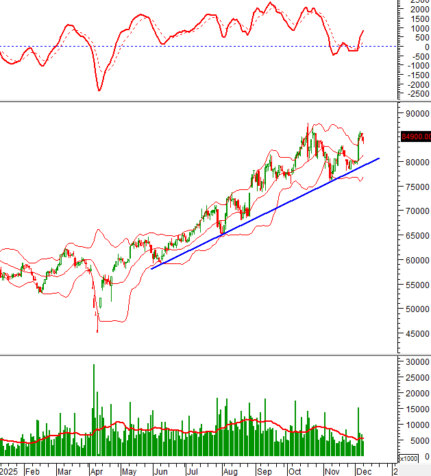 Đường trendline ngắn hạn (tương đương vùng 79,000-80,500) đóng vai trò hỗ trợ mạnh và hiệu quả trong đợt điều chỉnh vừa qua.