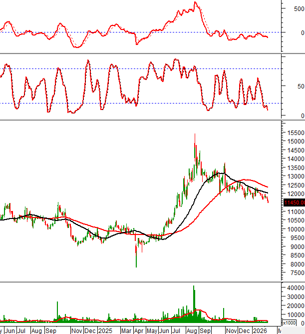 Giá đã rơi xuống dưới đáy cũ tháng 12/2025 (tương đương vùng 11,600-12,000). Do ngưỡng này bị phá vỡ hoàn toàn nên triển vọng ngắn hạn sẽ khá bi quan.
