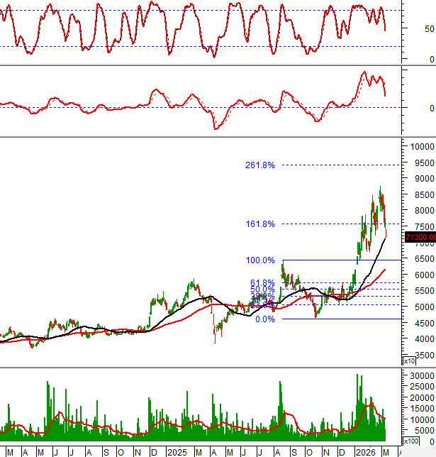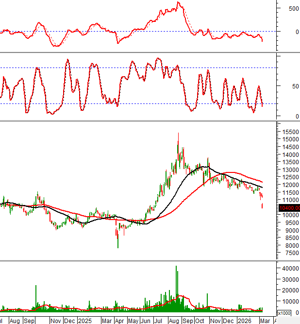 Trong phiên giao dịch ngày 09/03/2026, giá cổ phiếu MSN tiếp tục điều chỉnh và đã có 7 cây nến giảm liên tiếp.