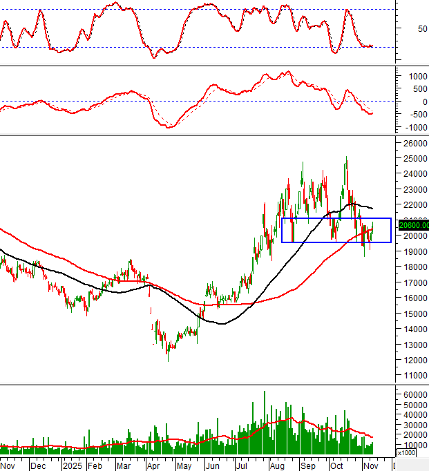 Đáy cũ tháng 08/2025 (tương đương vùng 19,500-21,000) đang đóng vai trò hỗ trợ trong ngắn hạn.