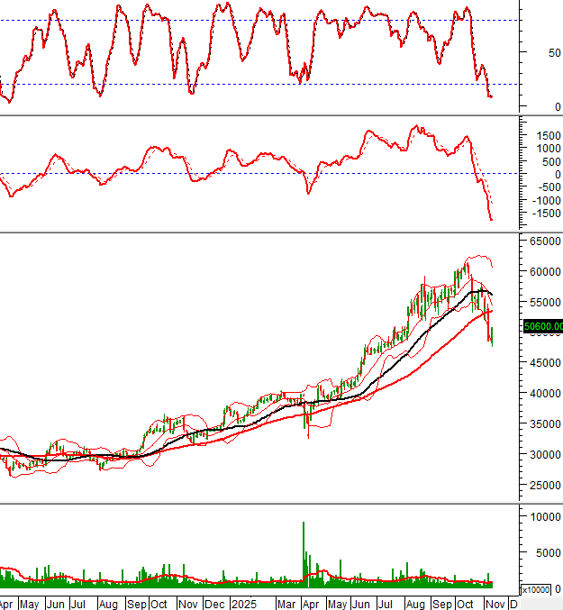 Đáy cũ tháng 08/2025 (tương đương vùng 51,700-53,000) đã bị thủng hoàn toàn nên sẽ chuyển từ hỗ trợ thành kháng cự mạnh trong thời gian tới.