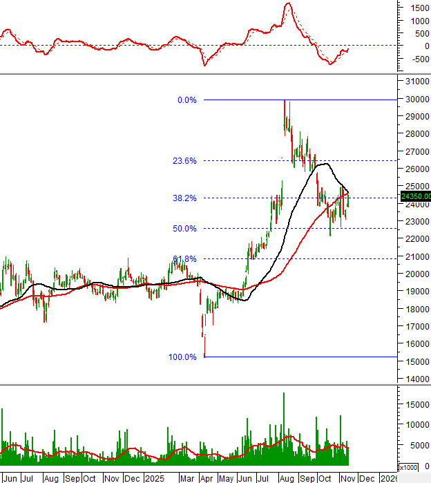 Hỗ trợ trong ngắn hạn là Fibonacci Retracement 50% và đáy cũ tháng 10/2025 (tương đương vùng 22,100-23,000).