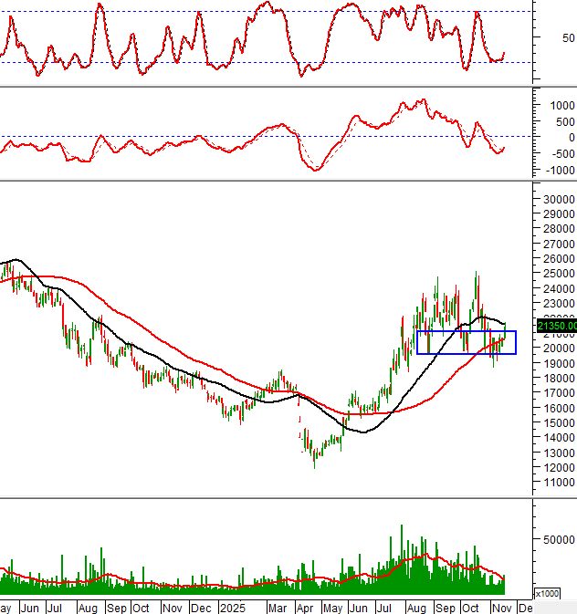 Chỉ báo Stochastic Oscillator đã cho tín hiệu mua trở lại trong vùng quá bán (oversold) nên triển vọng ngắn hạn được cải thiện.