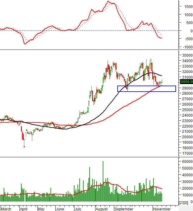 Hỗ trợ mạnh trong ngắn hạn của HDB là đáy cũ tháng 09/2025 (tương đương vùng 28,300-29,500). Đường SMA 100 ngày cũng đang duy trì tại đây.