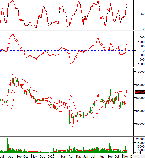 Chỉ báo Stochastic Oscillator đã đạt đến vùng quá mua (overbought). Nếu tín hiệu bán xuất hiện trở lại thì rủi ro sẽ tăng lên mức cao.