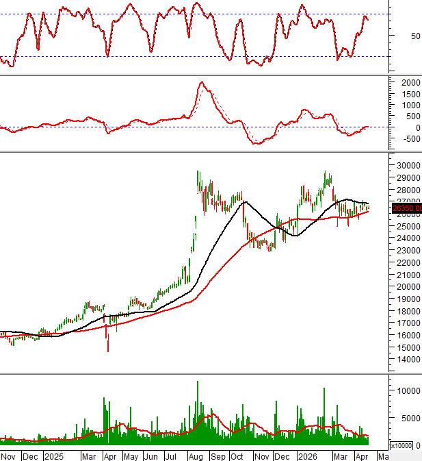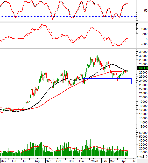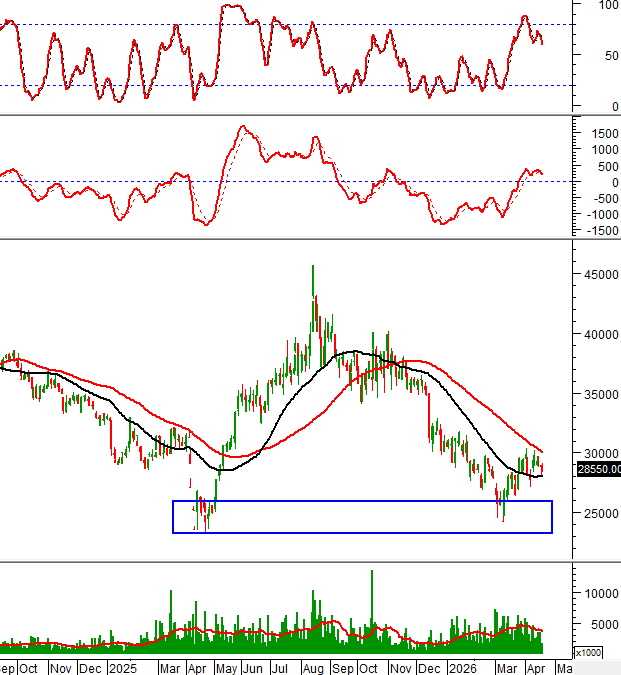 Đáy cũ tháng 03/2026 (tương đương vùng 24,800-25,800) đã hỗ trợ tốt trong đợt điều chỉnh gần nhất và dự kiến sẽ tiếp tục trụ vững trong thời gian tới.