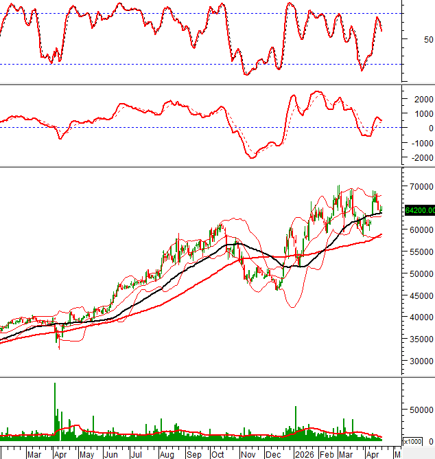 Trong phiên giao dịch ngày 20/04/2026, giá cổ phiếu VJC giằng co mạnh và khối lượng giao dịch rơi xuống dưới mức trung bình 20 ngày.
