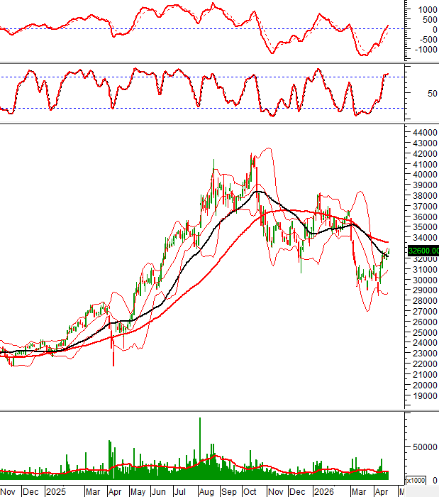 Giá đã vượt qua Middle của Bollinger Bands và SMA 50 ngày cho thấy xu hướng tăng đang quay trở lại.