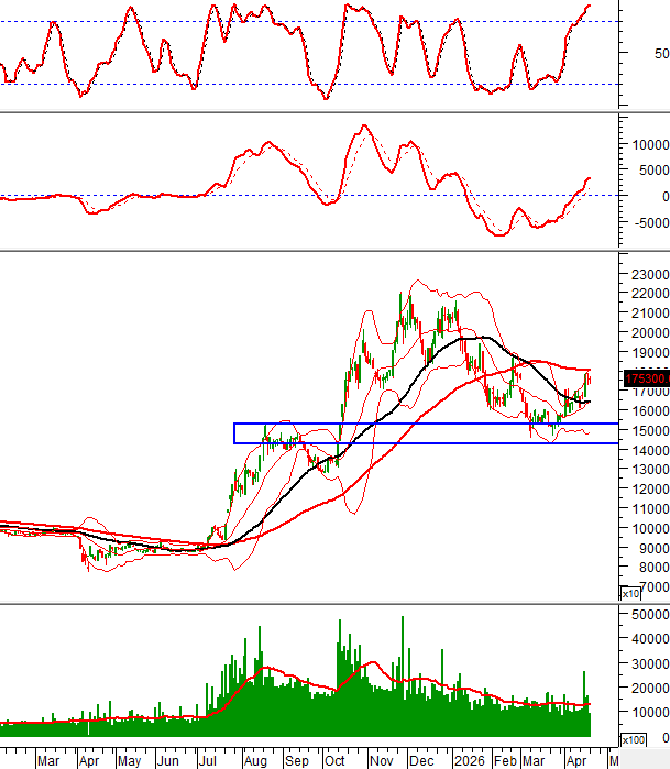 Chỉ báo MACD liên tục đi lên và vượt mức 0 nên tình hình ngắn hạn chuyển biến tích cực.