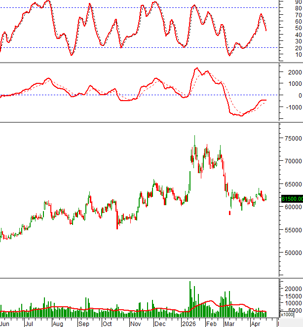 Khối lượng giao dịch nằm dưới mức trung bình 20 ngày cho thấy nhà đầu tư khá thận trọng trong bối cảnh Stochastic Oscillator vừa cho tín hiệu tiêu cực.