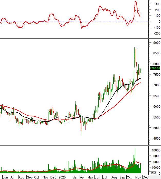 Trong phiên giao dịch ngày 24/11/2025, giá cổ phiếu KHG đi lên khá mạnh với khối lượng giao dịch tiến sát mức trung bình 20 ngày.