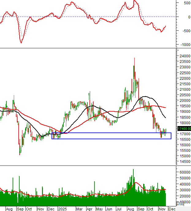 Đáy cũ tháng 01/2025 (tương đương vùng 16,500-17,000) sẽ đóng vai trò hỗ trợ mạnh trong thời gian tới. Việc mua vào khi giá ở gần vùng này được ủng hộ khi mà MACD đã cho tín hiệu mua trở lại.